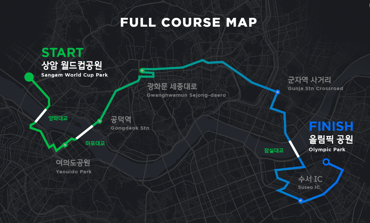 서울 도심의 아름다운 풍경을 따라 달릴 수 있는 코스로, 한강을 지나며 도심의 경치를 만끽할 수 있습니다.